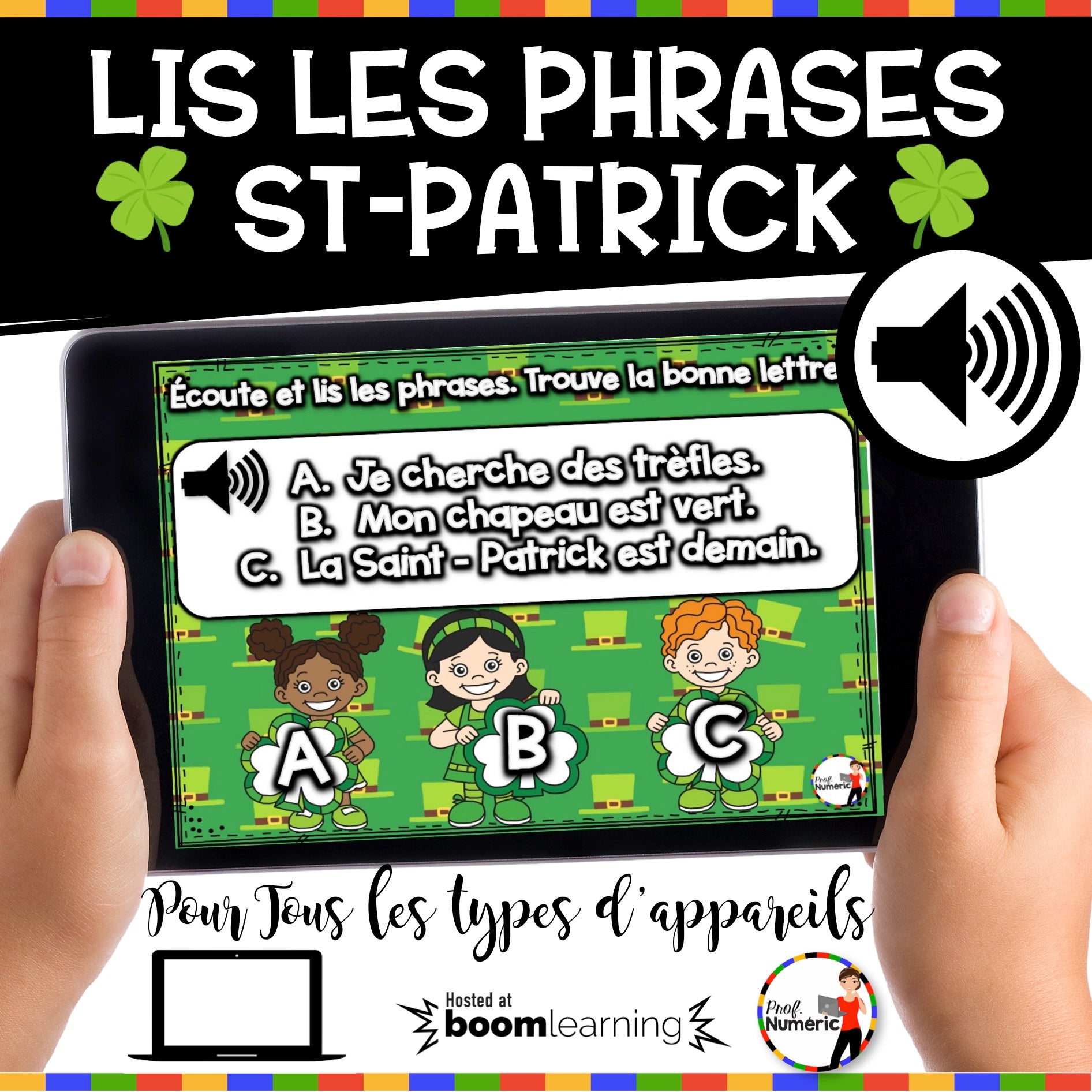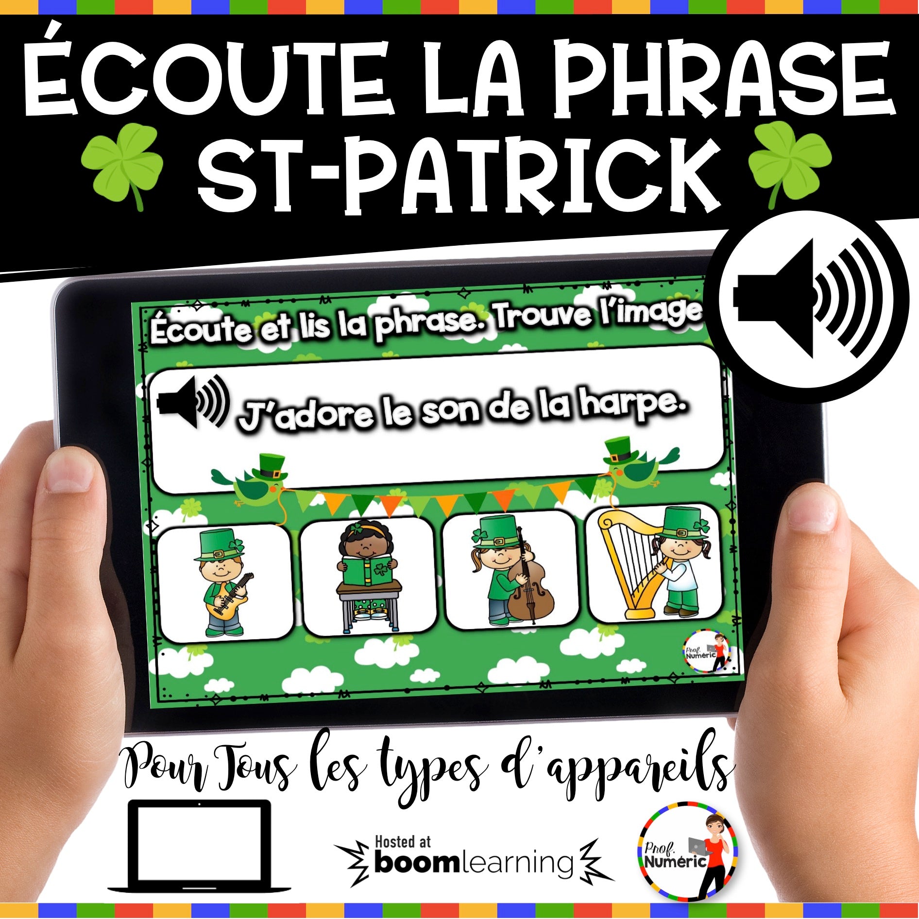 Exploitez la période de la Saint-Patrick avec un ensemble complet de 5 jeux BOOM Cards en français avec narration audio. Parfait pour le 1er cycle du primaire pour travailler la compréhension orale, la lecture et la structure du récit, en grand groupe ou en centres autonomes. 🎧💻